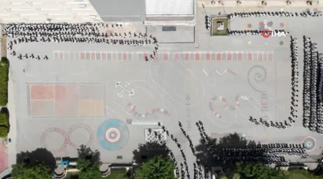 100. Yıla Öğrencilerden Muhteşem Ay Yıldızlı Koreografi Havadan Görüntülendi