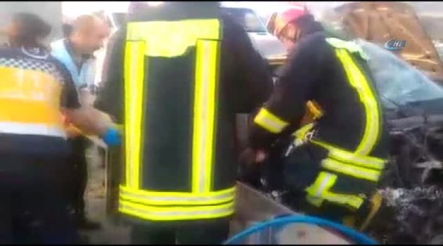 Kazada otomobil sürücüsünü yaralı olarak sıkıştığı yerden itfaiye ekipleri çıkardı