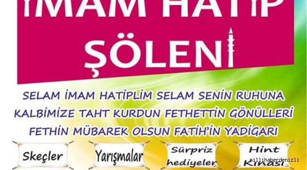İlimiz genelindeki İmam Hatip öğrencilerini ve diğer tüm lise öğrencilerini kapsayan “İmam Hatip Şöleni” ile tüm liselerde okuyan öğrencilere ulaşmayı hedefleyen çalışmanın Denizli ayağı 24 Aralık Cumartesi saat 13.30’da Denizli Lisesi Bahçesindeki Halk Eğitim Merkezi Konferans Salonunda gerçekleştirilecek.