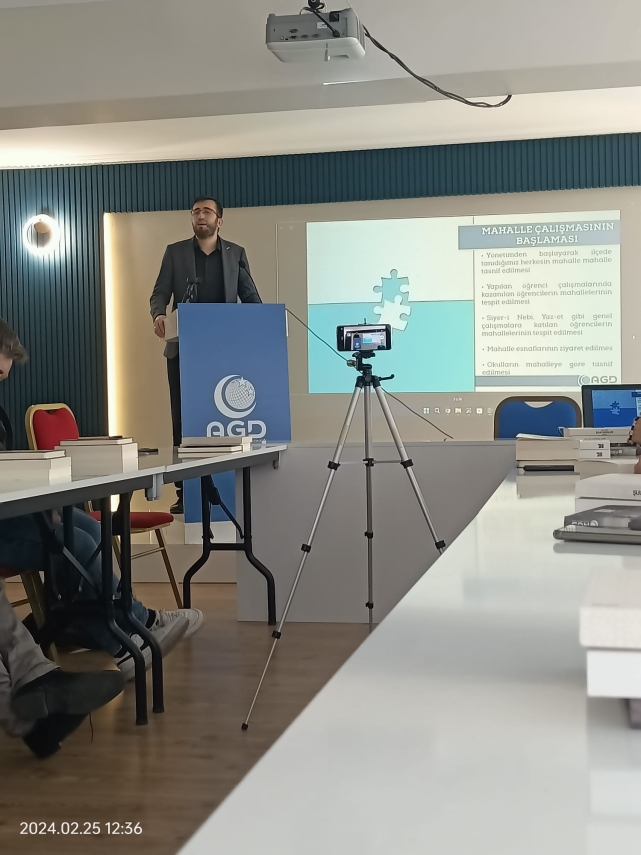 Toplantıya AGD Merkezefendi İlçe Başkanı Ahmetcan YILMAZ yönetim kurulu üyeleri ve mahalle temsilcileri hazır bulundu. Mahalle temsilcileri eğitimine katıldııktan sonra öğle namazı ardından Eğitimci Ahmet Eryılmaz'ın sunumunu dinlediler. Toplu fotoğraf çekimi ile program sonlandırıldı.
