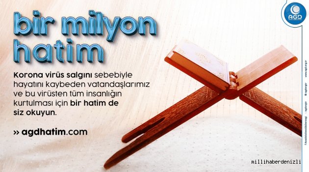 Anadolu Gençlik Derneği (AGD) Koronavirüs salgını sebebiyle hayatını kaybeden vatandaşlar ve virüsten tüm insanlığın kurtulması için 1 Milyon Hatim Kampanyası başlattı. Okunan hatimlerin duasının 19 Mayıs'ta Kadir Gecesi’nde yapılacağı bildirildi.