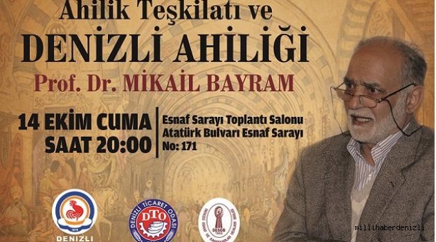 Denizli Büyükşehir Belediyesi "Ahilik teşkilatı ve Denizli ahiliği" adlı bir konferans düzenliyor.Yapılan davet duyurusu şu şekildeDENİZLİ BÜYÜKŞEHİR BELEDİYESİ'NİN DÜZENLEMİŞ OLDUĞU