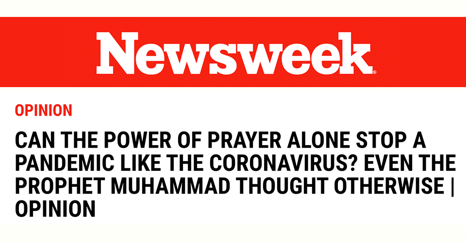 Newsweek'in haberinde Hz. Muhammed'in (sav) konuyla ilgili, "Bir yerde veba salgını duyarsanız, oraya girmeyin; ama veba sizin bulunduğunuz yerde çıkarsa, o yeri terk etmeyin" hadisi okurlarla paylaşıldı.