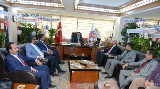 Denizli Ticaret Odası(DTO) Yönetim Kurulu Başkanı Uğur Erdoğan, MHP İl Başkanı Cafer Birtürk ve beraberindeki yönetim kurulunu ağırladı.