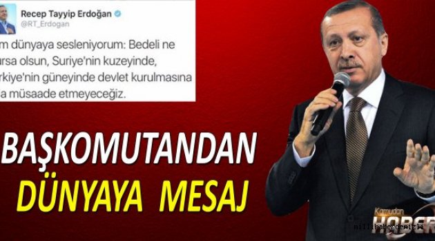 Cumhurbaşkanı Recep Tayyip Erdoğan suriye operasyonu başlangıcı ile Başkomutan dünyaya twetter üzerinden mesaj verdi...