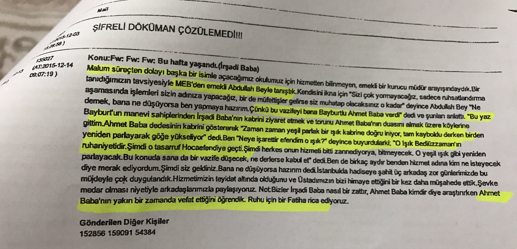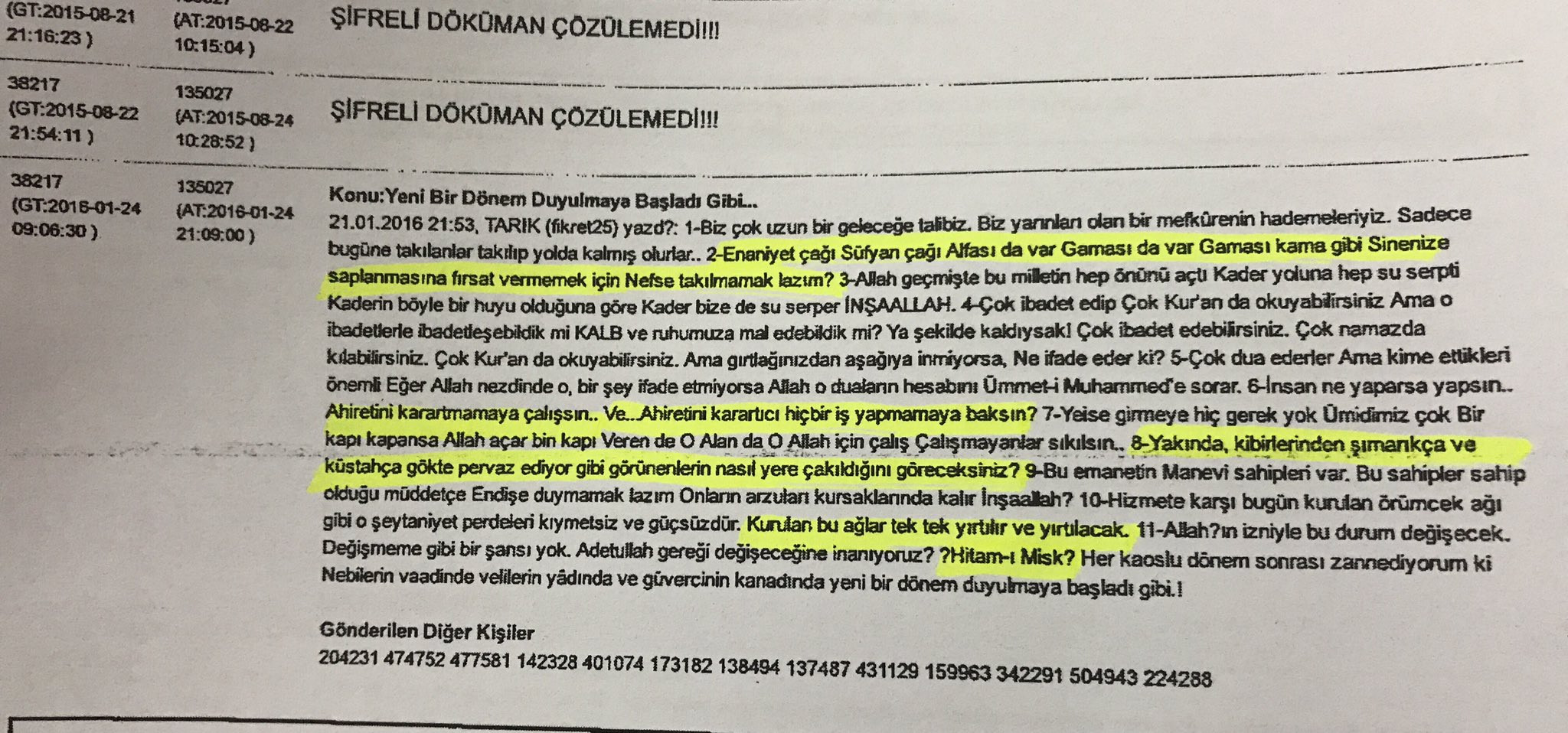 Köşeye sıkışan örgüt üyelerinin yeniden yapılanmak için örgütle daha önce hiçbir bağı olmayan insanları kullanarak dikkat çekmeden kirli emellerine ulaşmaya çalıştıkları yazışmalar arasında yer aldı. Bu yazışmalar bir kez daha FETÖ'nün ne kadar sinsi bir örgüt olduğunu göstermeye yeterken bağlılıkları da psikolojik bir vaka olarak ele alındı.