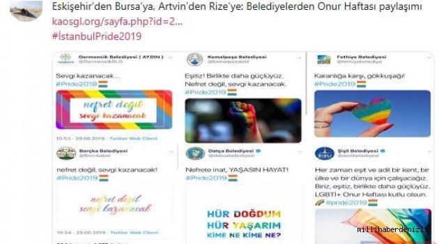 Bu yıl 27'inci kez düzenlenmesi planlanan sözde "Onur Haftası" adı altındaki sapkın etkinlikler için CHP, İP ve HDP'li belediyeler de seferber oldu. CHP, İP ve HDP'li belediyelerin resmi sosyal medya hesapları, eşcinsel paylaşımlar yapma konusunda adeta yarışa girdi. Söz konusu paylaşımların bazılarında sözde özgürlük ve Atatürkçülük bahsinin geçmesi vatandaşların tepkisini topladı