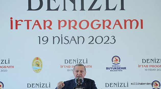 Cumhurbaşkanı Erdoğan, Denizli’de iftar programında yaptığı konuşmada, “Denizli'yle birlikte 81 vilayetimizin tamamına, Denizlili kardeşlerimle birlikte 85 milyonun her bir ferdine aşkla hizmet ettik” dedi.