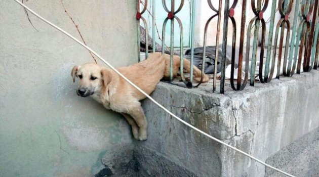 Denizli'nin Merkezefendi ilçesinde, apartmanın demir parmaklıkları arasında sıkışan sokak köpeği, itfaiye ekiplerince kurtarıldı. , 14 Haziran 2017 Çarşamba