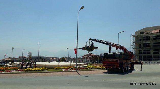 Denizli'de Albayrak Meydanı'nın üstünde yer alan kavşaktaki meydana tank ve tankı durduran halkı simgeleyen anıt dikiliyor