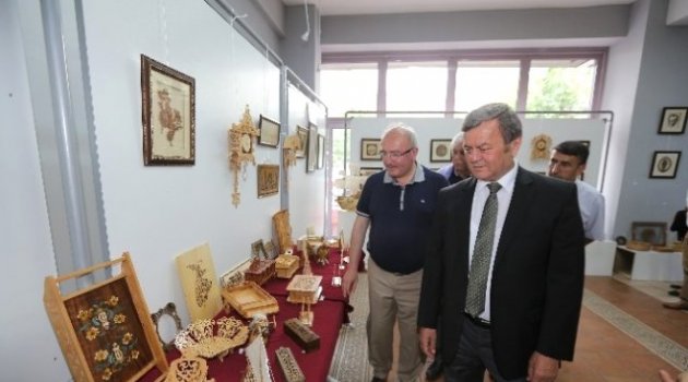 Denizli Büyükşehir Belediyesi Tarihi Atalar Evi El Sanatları Kurslarına katılan kursiyerlerin eserlerinden oluşan "Sanatın Dokunuşları" adlı karma sergi açıldı.