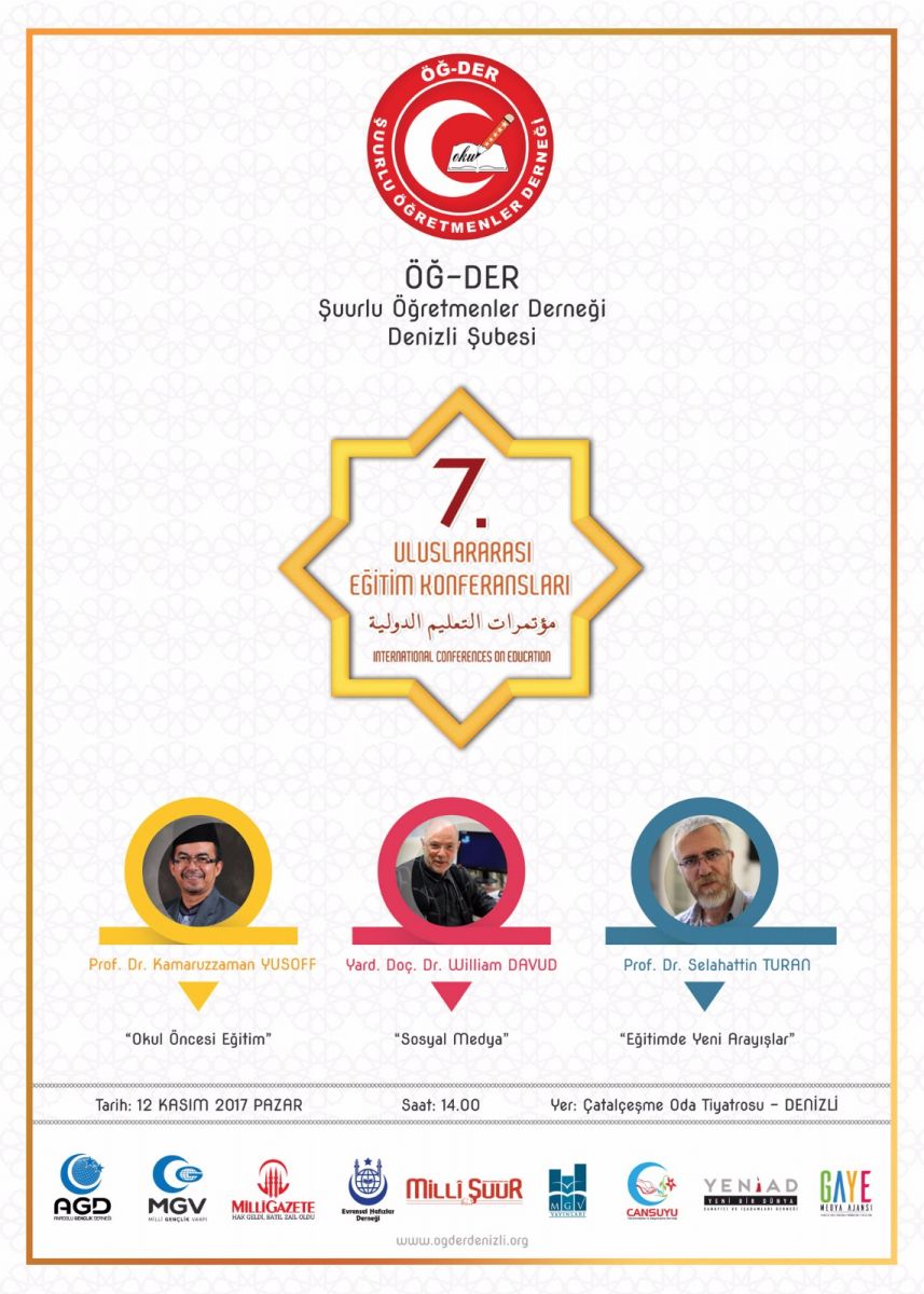 Şuurlu Öğretmenler Derneği (ÖĞ-DER) 7. Uluslararası Eğitim Konferanslarını düzenliyor. Türkiye genelinde 9 ilde yapılacak Uluslararası Eğitim Konferansları Denizli 'de de 12 Kasım Pazar günü Saat:14:00 da Çatal çeşme Oda tiyatrosunda gerçekleştirecek. Programa yerli ve yabancı Müslüman ilim adamı ve temsilcileri katılacak.