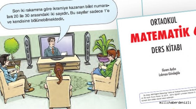 Eğitimci Ekrem Aydın ve Lokman Gündoğdu tarafından hazırlanan, ortaokul 6. sınıflarda öğrencilere ders olarak okutturulan Matematik kitabının 37. sayfasında “Asal Sayıları ve Doğal Sayıları Asal Çarpanlarına Ayırma” konusu işleniyor. Örneklendirerek konuyu anlatma yoluna gidilen kitapta yer verilen görselde, çocuklu bir aile televizyon başında piyango çekilişi seyrederken resmediliyor. Ders görselinde, kumar çekilişi yapan televizyon spikerinin “Son iki rakamına göre ikramiye kazanan bilet numaraları 20 ile 30 arasındaki iki sayıdır. Bu sayılar sadece 1’e ve kendisine bölünebilmektedir” dediği görülüyor. Mizansendeki sunumun, “Spikerin konuşmasında yer verdiği ipuçlarından yararlanarak ikramiye kazanan bilet numaralarının son iki basamağındaki sayıları söyleyiniz.” şeklinde soru olarak tamamlanıldığı sayfada kumar illeti adeta körpe beyinlere meşru bir eylemmiş gibi empoze ediliyor.