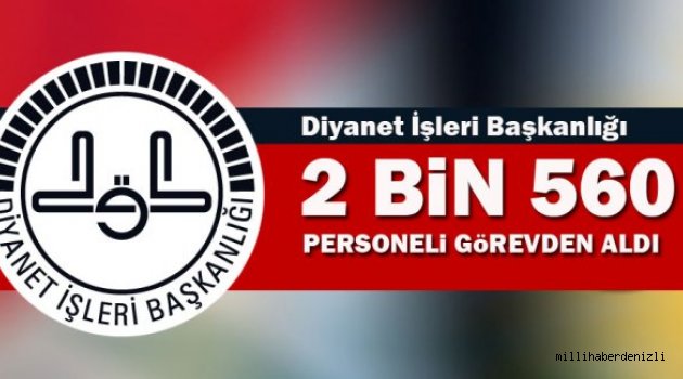 Diyanet İşleri Başkanlığı merkez, taşra ve yurt dışı teşkilatında her kademeden FETÖ/PDY ile ilişkili 2.560 personel daha görevlerinden uzaklaştırılmıştır.