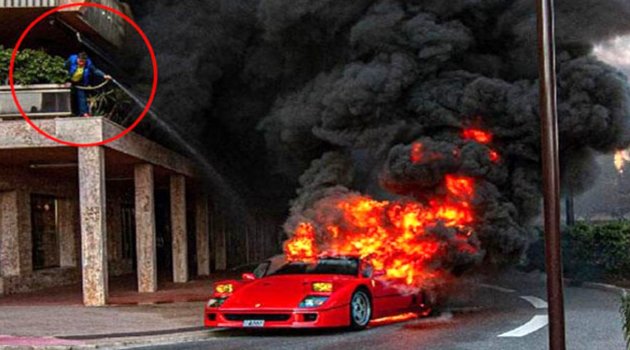 Fransa'da 1980-1990 yılları arasında sınırlı sayıda üretilen Ferrari F40 modeli spor arabanın motorunda çıkan yangın sonucu araç alev aldı. Araç sahibinin bahçe hortumuyla araca su sıkarak söndürmeye çalıştığı anlar ise sosyal medyada yoğun ilgi gördü.