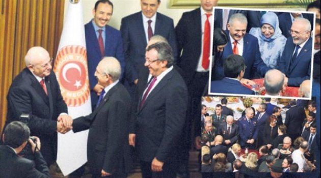 Kahraman, içki servisi yapılmamasının nedeni sorulunca “Normal bir hadise. Her şey normal, her şey güzel” yanıtını verdi. CHP Grup Başkanvekili Özgür Özel ise “Alkol servisinin yapılmayışı dikkati çeken bir ayrıntı. Kimse içki içmenin meraklısı değil ama burası Meclis Başkanı’nın kendi tercihlerine göre yönetebileceği bir yer değil” dedi. Öte yandan davetliler Başbakan Binali Yıldırım ile hatıra fotoğrafı çektirmek için yarıştı.