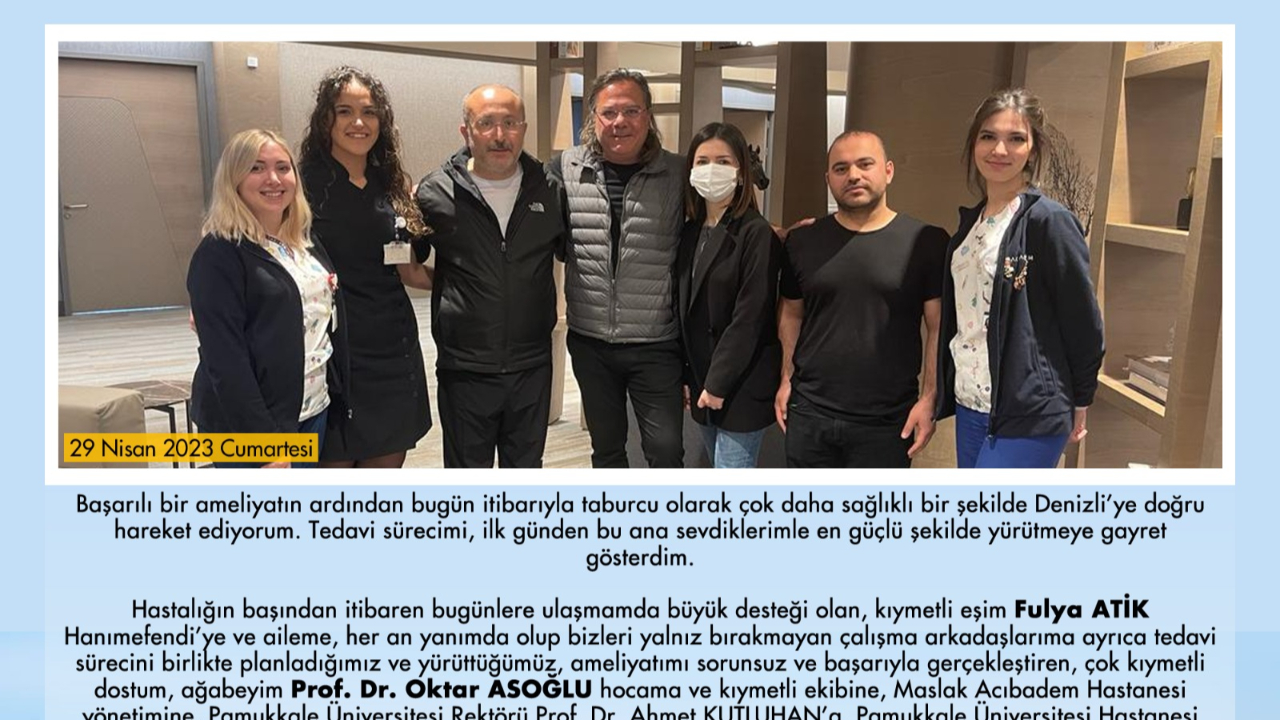Hastalığına rağmen Hatay'da büyük bir özveri ile çalışmasını sürdüren, görevinin başından ayrılmayan Vali Ali Fuat Atik, bayram boyunca da Hataylılarla birlikte olduktan sonra Ameliyat için masaya yattı.İstanbul Maslak Acıbadem Hastanesi'nde Prof. Dr. Oktar ASOĞLU tarafından ameliyat edilen Atik, sağlına kavuştu ve bugün taburcu edilerek Denizli'ye doğru yola çıktı.Başarılı bir ameliyatın ardından, bugün itibarıyla taburcu olarak çok daha sağlıklı bir şekilde, Denizli’ye doğru hareket ediyorum.