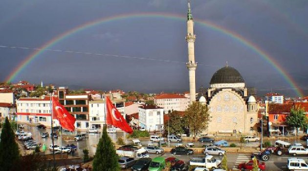 Denizli'de dün başlayan ve zaman zaman etkili olan yağmur, Honaz'da da kendini gösterdi. Yağışın ardından çıkan güneşle birlikte meydana gelen çift gökkuşağı, renkli görüntüler ortaya çıkardı. Çift gökkuşağı, Honaz Çarşı Camii ve Honaz Meydanı'nda bulunan bayraklar ile birlikte görsel bir şölen sundu.