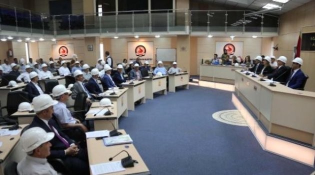 Denizli Büyükşehir Belediye Başkanı AK Partili Osman Zolan ve meclis üyeleri, Haziran ayı meclis toplantısında iş sağlığı ve güvenliğine dikkat çekmek için baret taktı.