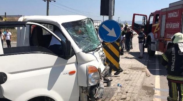 DENİZLİ'nin Merkezefendi ilçesinde, kavşakta çarpışan kamyonet ile hafif ticari aracın sürücüleri yaralandı.