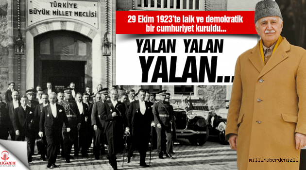 Üçüncü yalan: Türkiye laik bir Cumhuriyettir. Yalan yalan yalan… Cumhuriyet tarihinde asla laiklik olmamıştır, din düşmanı çok zalim, çok kanlı bir laikçilik uygulanmış, Müslüman çoğunluğun din ve inanç hakları ayaklar altına alınmış, medreseler ve tekkeler kapatılmış, on bin kadar cami, mescid, medrese, imaret, taş mekteb binası yıkılmış, satılmış, kiraya verilmiştir. Devletin, genel müdürlük seviyesinde bir Diyanet Başkanlığına sahip olduğu rejime laik diyenin alnını karışlamak gerekir. Böyle laiklik olur mu Bu yaman bir çelişki değil midir