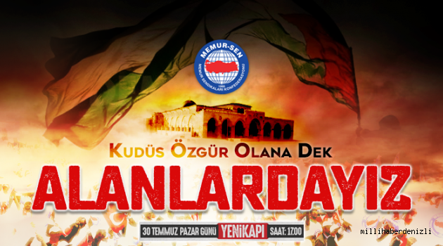 Siyonist İsrail rejiminin Mescid-i Aksa’ya yönelik kuşatmasının ardından tepkiler çığ gibi büyüyor. Pazar günü İstanbul Yenikapı’da düzenlenecek olan Büyük Kudüs Mitingine milyonların katılması bekleniyor. Memur-Sen Genel Başkanı Ali Yalçın da yaptığı açıklama ile mitinge katılacaklarını ifade etti.