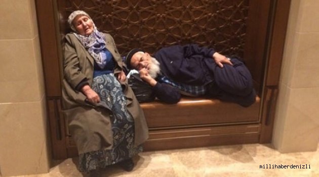 Cumhurbaşkanı Erdoğan'ın çağrısıyla dün yüzbinler Beştepe'ye aktı. Külliye'de misafir edilenlerden bir yaşlı çift yorgunluktan uyuya kaldı. Güvenlik güçleri de bu iki güzel insanı uyandırmaya kıyamayınca ortaya bu anlamlı kare çıktı.