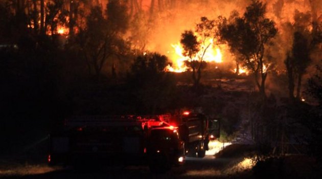 Muğla'nın Dalaman ilçesinde çıkan yangını söndürme çalışmaları gece de devam ediyor. Karacaağaç Mahalle Mezarlığı'na yakın ormanlık alanda öğleden sonra henüz belirlenemeyen nedenle çıkan yangına 20'ye yakın helikopterle havadan, 77 arazöz ve 426 yangın söndürme işçisiyle karadan müdahale edildi. Yangına müdahale için çevre ilçelerin yanı sıra Ankara, Eskişehir, Balıkesir, Bursa, Konya, Kütahya, Antalya, İzmir, Denizli ve Aydın'dan ekipler bölgeye yönlendirildi.Yangın bölgesinde oluşturulan kriz merkezinde çalışmaları yöneten Muğla Valisi Esengül Civelek, AA muhabirine yaptığı açıklamada, Dalaman ilçesinde öğle saatlerinde başlayan yangına hava kararıncaya kadar 20'ye yakın helikopterle müdahale edildiğini söyledi. 'EKİPLER SÖNDÜRME ÇALIŞMALARINDA GÜÇLÜK ÇEKİYOR'Havanın kararmasıyla birlikte yakın il ve ilçelerden gelen arazöz ve orman yangın söndürme işçilerinin karadan müdahaleyi aralıksız sürdürdüklerini belirten Civelek, 'Orman Genel Müdürlüğü personeli ve tüm kurumların katılımıyla bölgede bir kriz merkezi oluşturduk ve yangın mahalinde çalışmaları yönetiyoruz. Bölgede rüzgar etkili oluyor. Bu nedenle ekipler söndürme çalışmalarında güçlük çekiyor.' dedi.Yangının devam ettiği alanda can ve mal kaybı yaşanmadığını vurgulayan Civelek, 'Vatandaşlarımızın can güvenliği için tedbir amaçlı iki mahallede 34 haneyi tahliye ettik. Bunları tedbir amaçlı yaptık. Yangın şu an için geniş bir alanda etkisini sürdürüyor.' diye konuştu.Öte yandan, yangın sırasında yükselen dumanlar, gökyüzünü kapladı. Dumanlar yaklaşık 60 kilometre mesafedeki Fethiye'den de görüldü. İKİ KÖY BOŞALTILDIMuğla'nın Dalaman ilçesi Karacaağaç Mahallesi'nde başlayan yangın komşu Kayadibi ve Taşlıca mahallelerine de sıçradı. Alevler, Kayadibi Mahallesi sınırları içerisindeki 2 eve zarar verdi. Jandarma ve Dalaman Orman İşletme Müdürlüğü ekipleri tarafından yapılan anonslar ile alevlerin tehdit ettiği Kayadibi ve Taşlıca mahallelerindeki evler boşaltıldı. Köylüler, taşıyabildikleri eşyalarını traktörlerine ve kamyonetlerine yükleyerek uzaklaştırdı. Bazı köylüler de ahır ve ağıllarındaki hayvanlarını daha güvenli bir bölgeye götürdü. BARINAKTAKİ HAYVANLAR İÇİN SEFERBER OLUNDUGöcek Doğa ve Hayvan Dostları Derneği'ne ait hayvan barınağındaki 250 kedi ve köpek de alevlerin bölgeye ulaşma ihtimaline karşı tedbir amacıyla tahliye edildi. Bölgede yerleşik yaşayan yabancı uyuruklular da barınaktaki hayvanların nakledilmesi için seferber oldu. Hayvanseverler tarafından kafeslere konulan kedi ve köpekler, güvenli bölgeye götürülmek üzere barınaktan tahliye edildi. Barınak görevlisi Sina Karadağ, 'Alevler bulunduğumuz yere doğru yaklaşıyor. Bu hayvanları kurtarmamız gerekiyor. Gelen herkes yardımcı oluyor. 250 hayvan bulunuyor. Hasta olanları öncelikli olarak gönderiyoruz. Sağlıklı olanları yangından kaçsınlar diye bırakacağız' dedi.