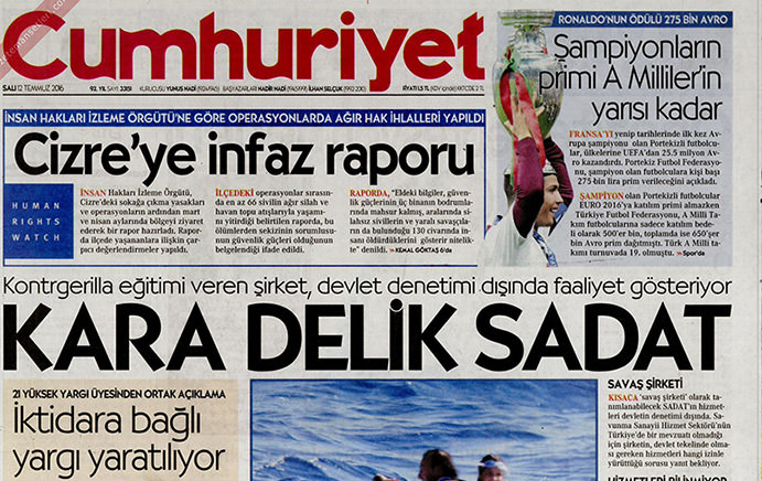 PKK ve FETÖ'nün yayın organlarının hedefindeki SADAT sessiliğini bozdu. Uluslararası Savunma Danışmanlık Şirketi (SADAT) Yönetim Kurulu Başkanı emekli tuğgeneral Adnan Tanrıverdi, FETÖ ve PKK’ya ait medya kuruluşlarının iftiralarına sert tepki gösterdi. Tanrıverdi, Batı’nın İslam ülkelerini savunma danışmanlık şirketleriyle dizayn ettiğini belirterek, bunlara alternatif olan SADAT’ın bu nedenle saldırıya uğradığını söyledi.