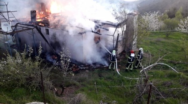 Denizli'de tek katlı ev, alevlere teslim oldu.