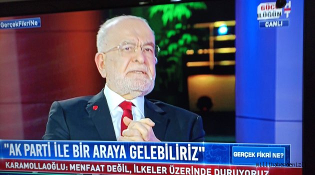 Cumhurbaşkanı Recep Tayyip Erdoğan'ın Saadet Partisi Yüksek İstişare Kurulu Başkanı Oğuzhan Asiltürk'ü evinde ziyaret etmesini değerlendiren Saadet Partisi Genel Başkanı Temel Karamollaoğlu, “AKP ile ittifak yapılabilir mi? Yapılabilir. Hangi şartlarda? Doğru bulmadığımız politikalarını değiştirmesi şartıyla. Biz ilkeler üzerinde duruyoruz” dedi.Habertürk TV'de Eren Eğilmez'in moderasyonunu yaptığı gazeteci Nagehan Alçı, Gökhan Hacır ve Cem Küçük'ün sorularını yanıtlayan Saadet Partisi Genel Başkanı Temel Karamollaoğlu gündeme ilişkin konularla ilgili açıklamalarda bulunduCumhurbaşkanı Recep Tayyip Erdoğan'ın Saadet Partisi Yüksek İstişare Kurulu Başkanı Oğuzhan Asiltürk'ü evinde ziyaret etmesiyle ilgili bir soruya yanıt veren SP Lideri Karamollaoğlu şöyle konuştu: